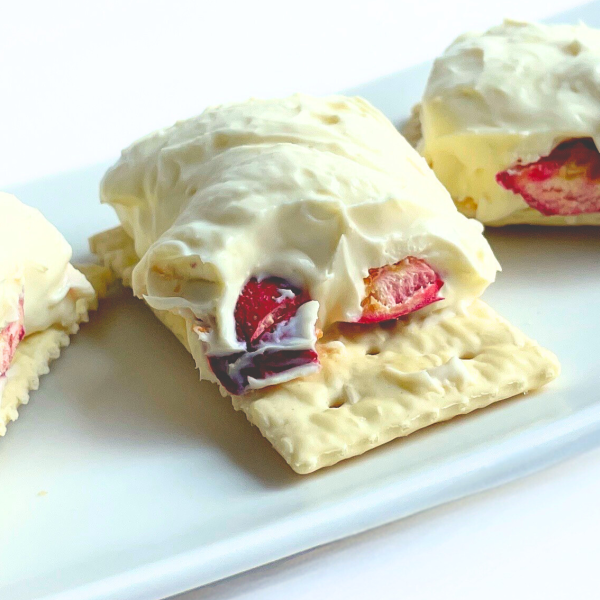 クリームチーズに、砕いた山査子フリーズドライとお好みの砂糖を混ぜて、クラッカーにのせて完成です。