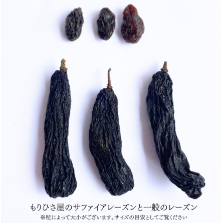 当店のサファイアレーズン皇は、一般的なレーズン独特の渋みがなく、葡萄本来の甘くて濃い味わいが楽しめますよ。