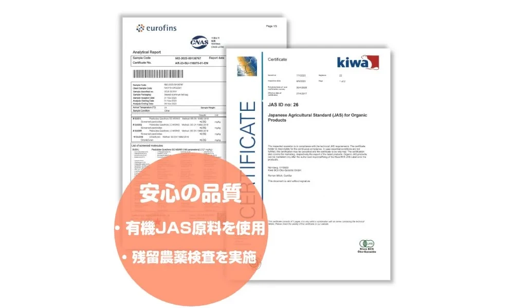 ②安心の証「有機JAS」&「USDA」ダブル認証