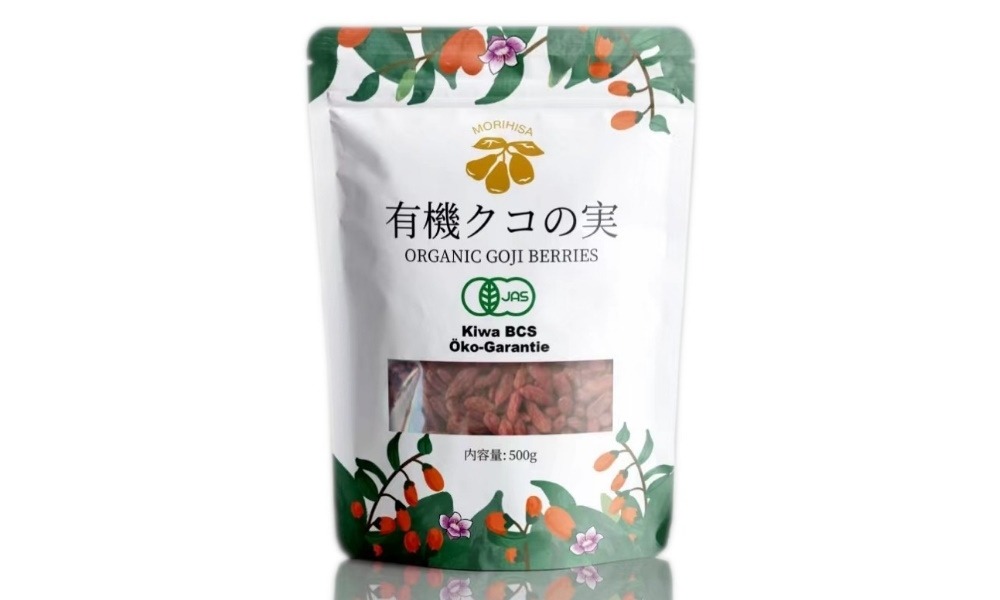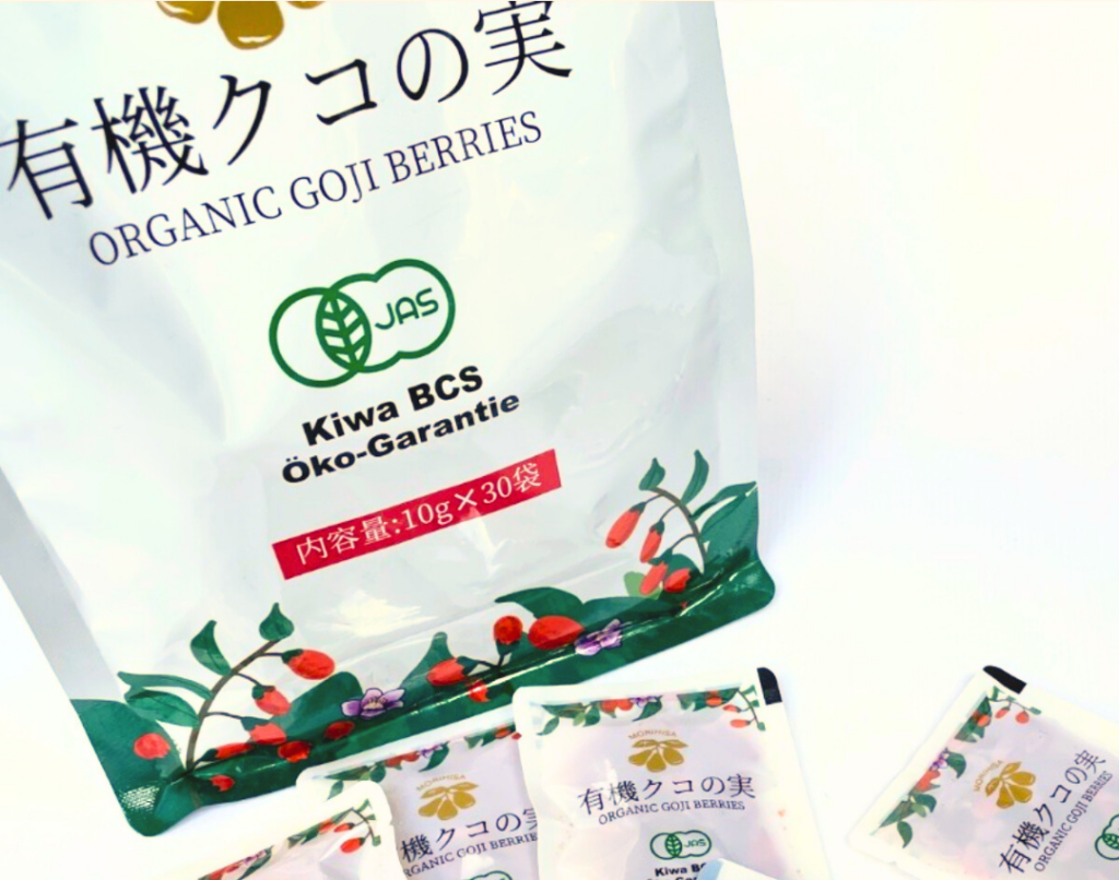 同じ有機栽培されたクコの実であっても、工場自体が有機JASの認定を受けていない場合は、法律上パッケージに有機マークを表示することができません。従って、「有機JASマーク」あり/なしに関わらず、もりひさ屋のクコの実は安心・安全にお召し上がりいただけます。
