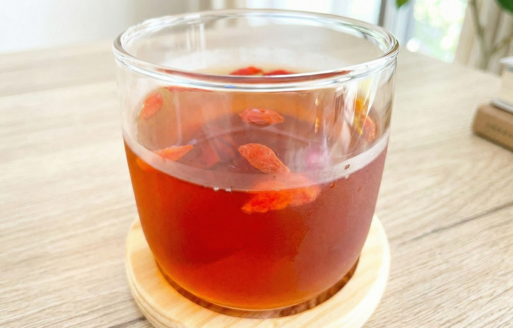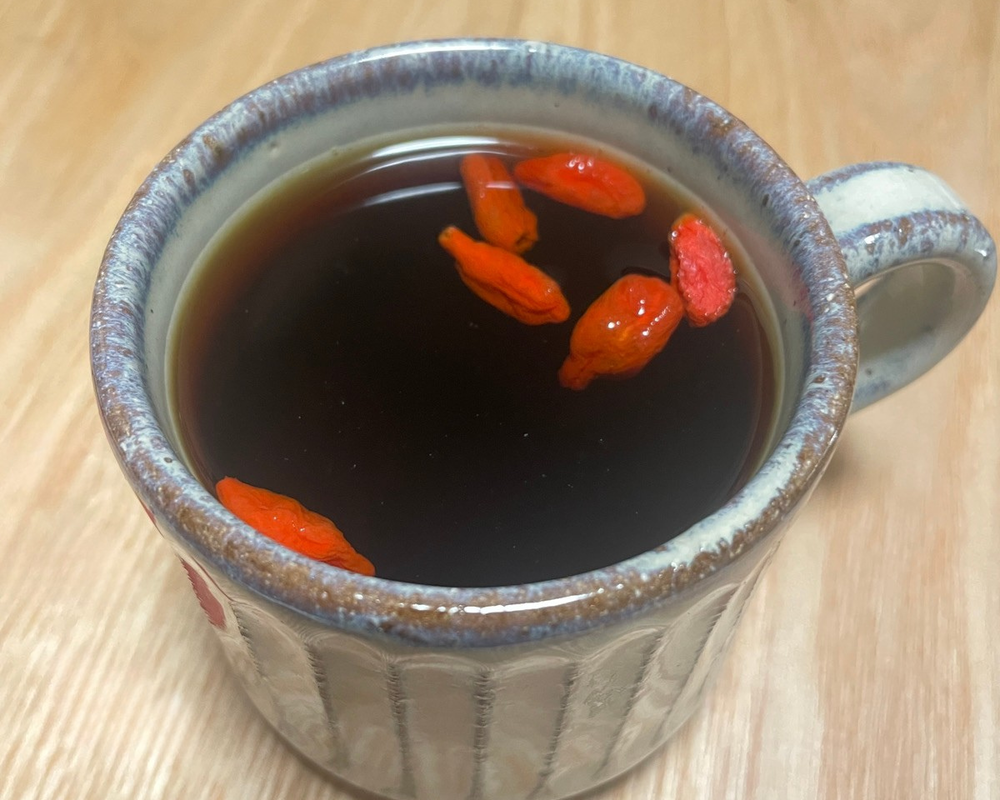 お湯を継ぎ足しながら2から3煎ほど楽しむことができ、最後に残ったクコの実も食べられます。